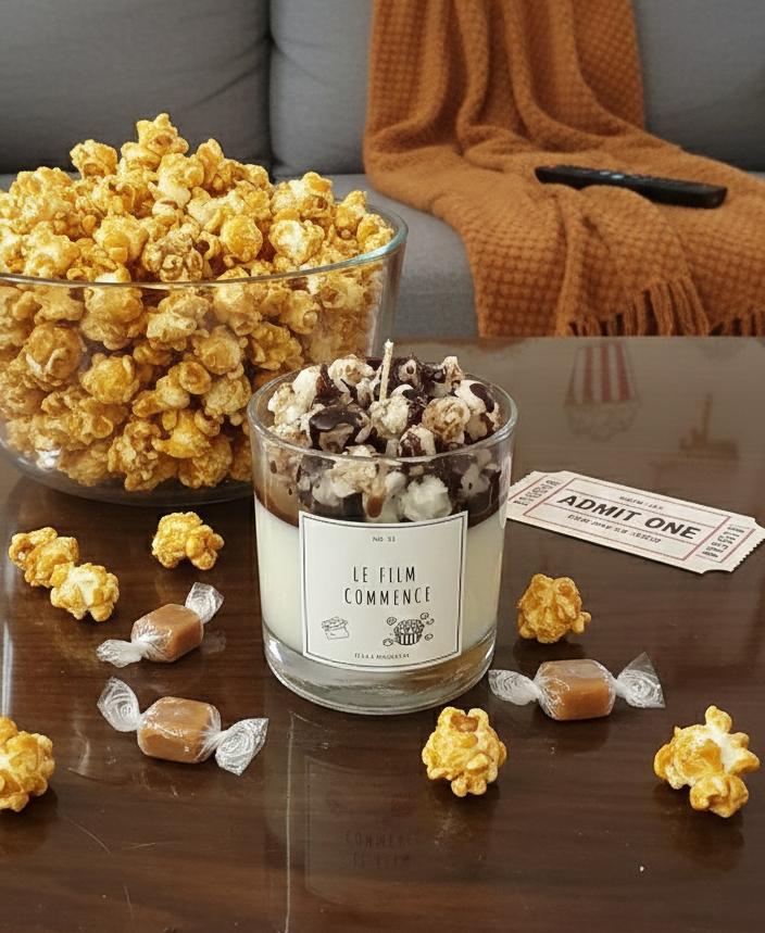 Une bougie qui ressemble à une boîte de pop-corn au beurre et au caramel — amusante, nostalgique et totalement inattendue. Coulée à la main avec de la cire de soja et des ingrédients non toxiques, elle apporte une touche ludique aux soirées cinéma ou aux fans de pop-corn.